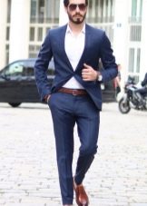 In order for the belt to perform not only its direct function, but also serve as a bright color accent, you can choose it in contrast to trousers or a suit. For example, a white belt on jeans or a blue accessory against a background of light gray or white trousers looks very extravagant, but at the same time stylish.