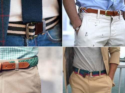 - Textile. Belts made of fabric and fibers are much less common in men's wardrobe, but for some clothes they are just right. Textile cloth belts are combined with summer trousers and shorts. Fabric accessories, as well as braided from various threads and elastic bands, are more elastic and have a wide range of colors.