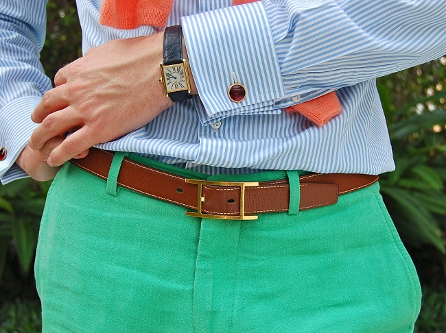 It is generally accepted that the representatives of the stronger sex should stick to restrained shades. And that's right for a classic outfit, office work and, for example, going to the theater. However, brown and black men's belts can get bored and you want something brighter.