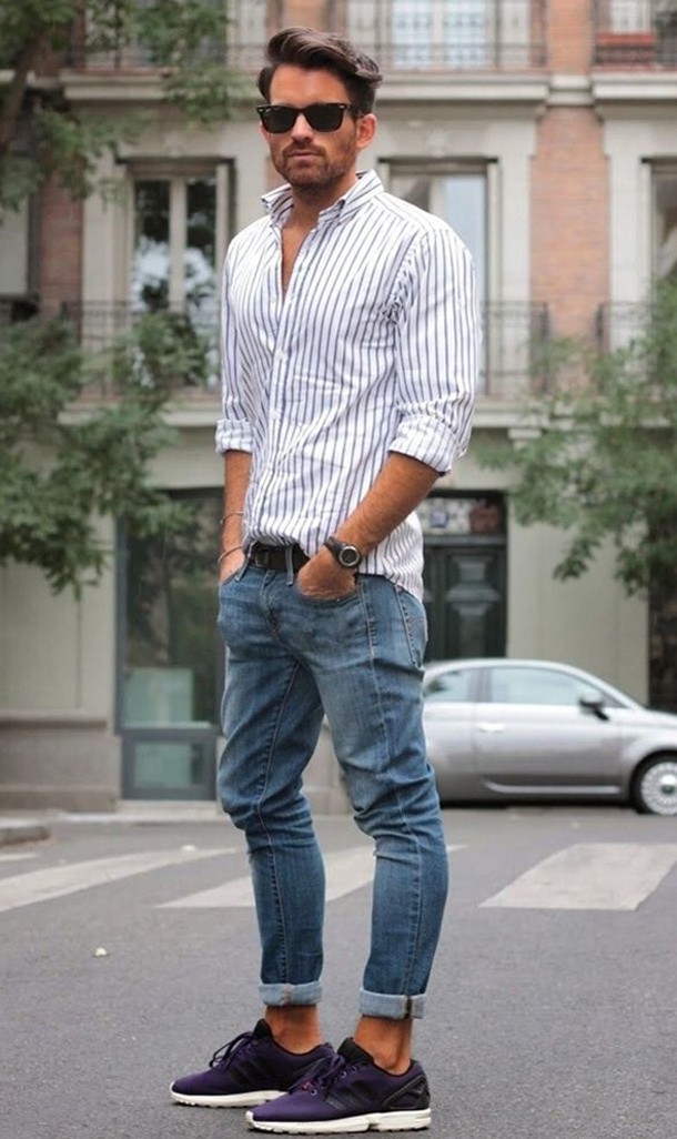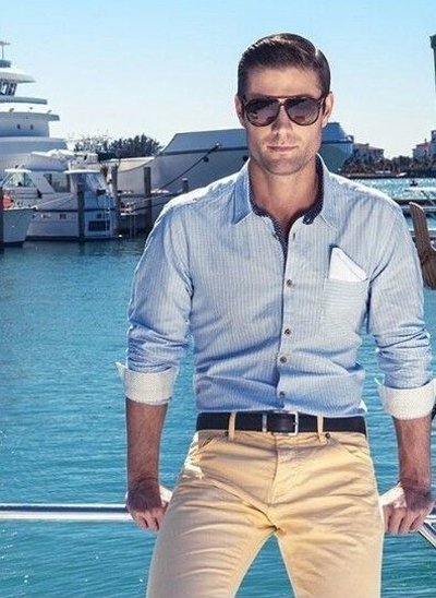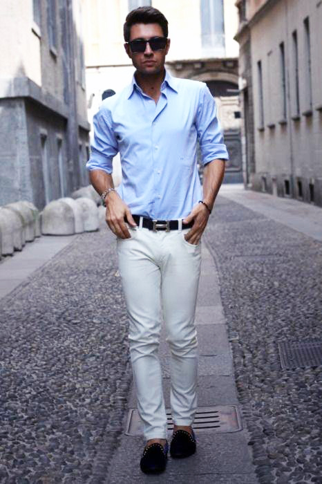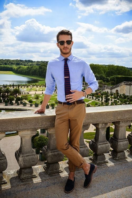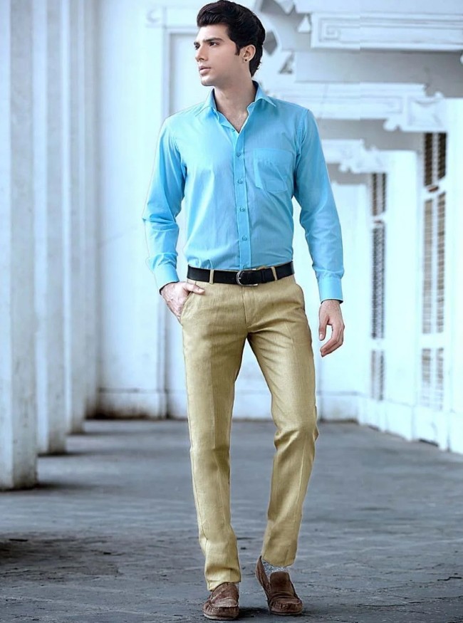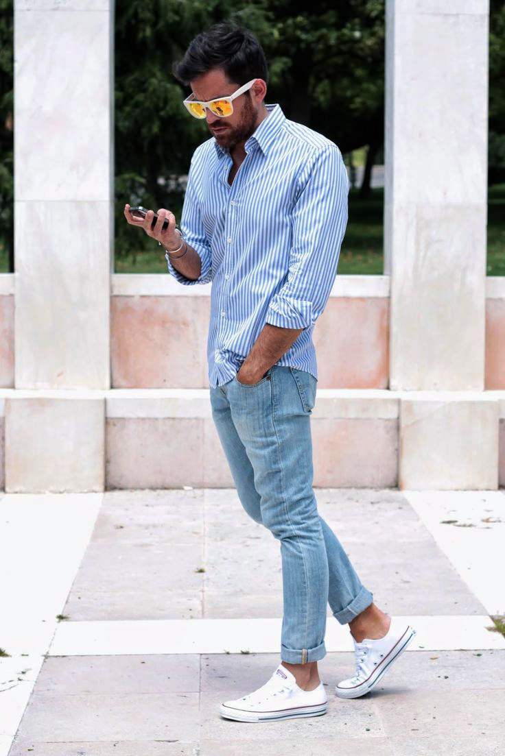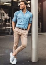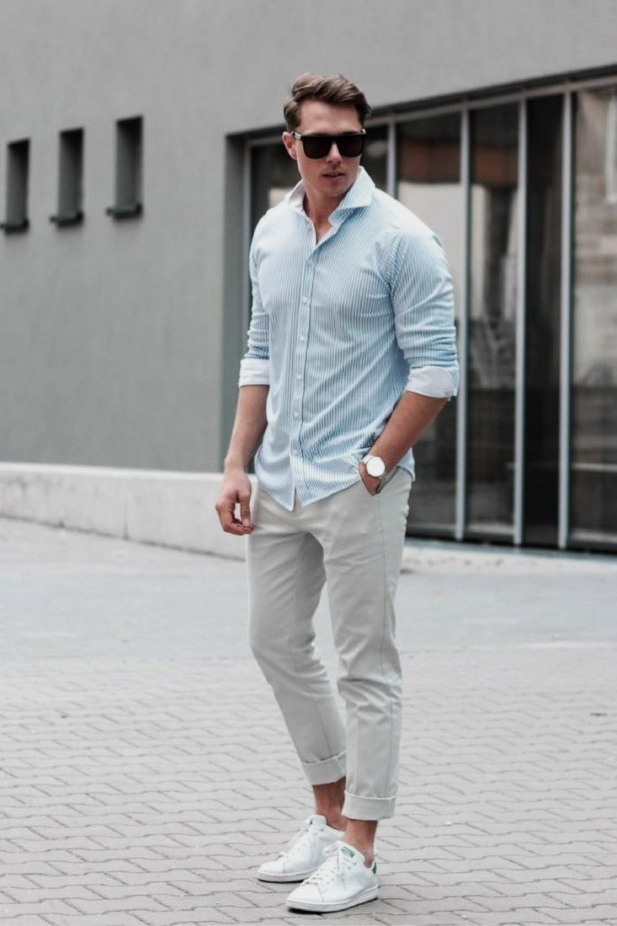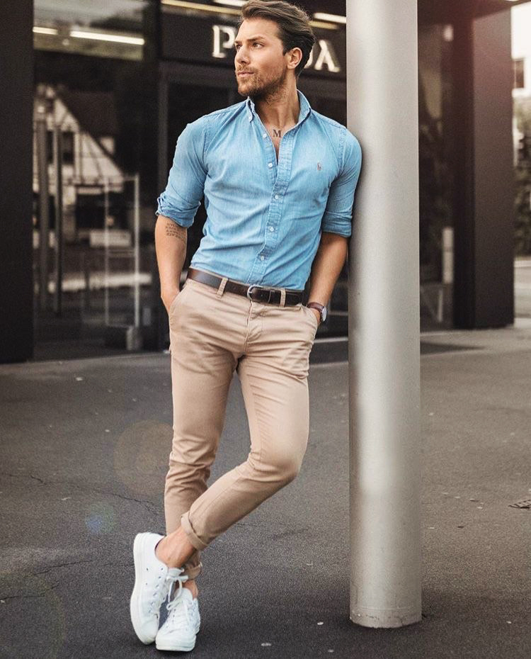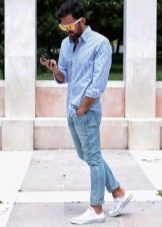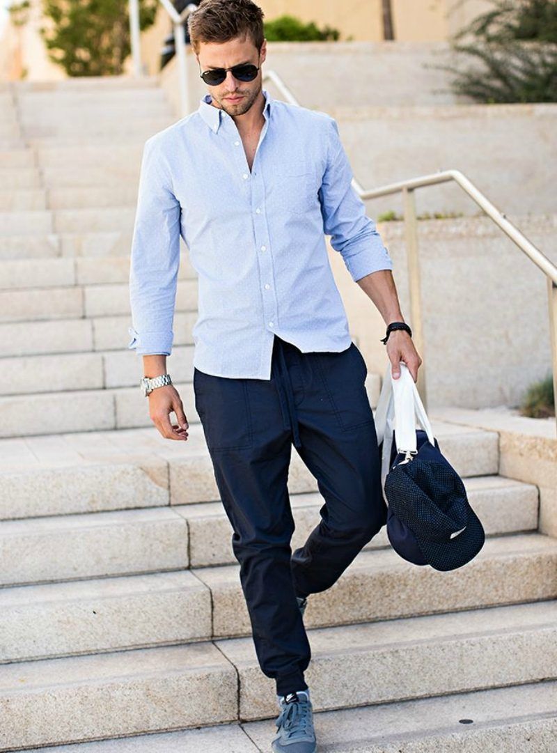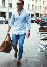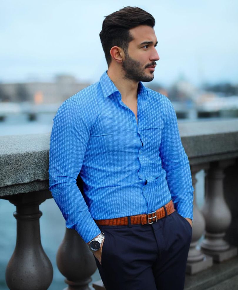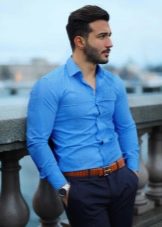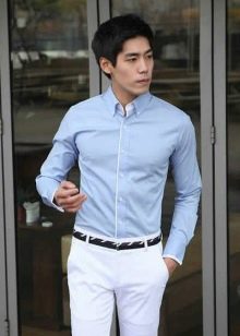 Rock light blue long sleeve shirts for a classy look. This shade is the trend of the season, and if the short sleeve was appropriate only in the summer, then the classic and printed models with full sleeves can be worn right now. Men love different shades of the palette - from light blue to dark. Shirts with a white collar, striped, and cage are also in demand. It is not difficult to create a fashionable bow with a blue shirt, but you need to know how to combine it correctly with other things.