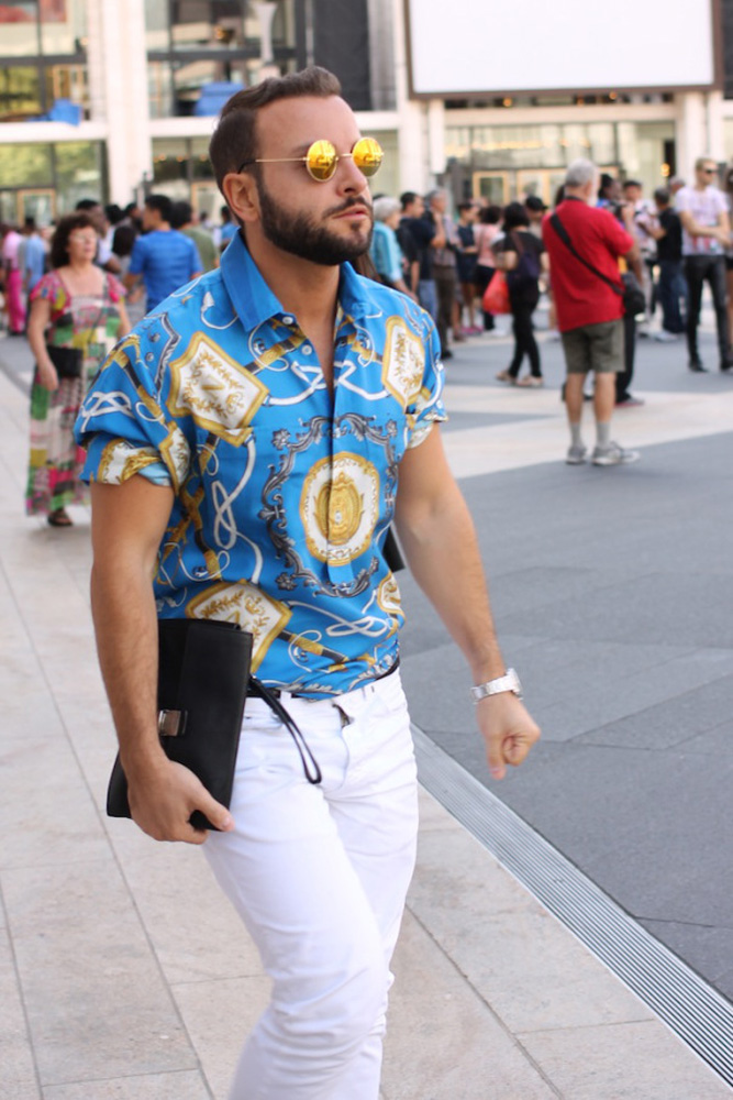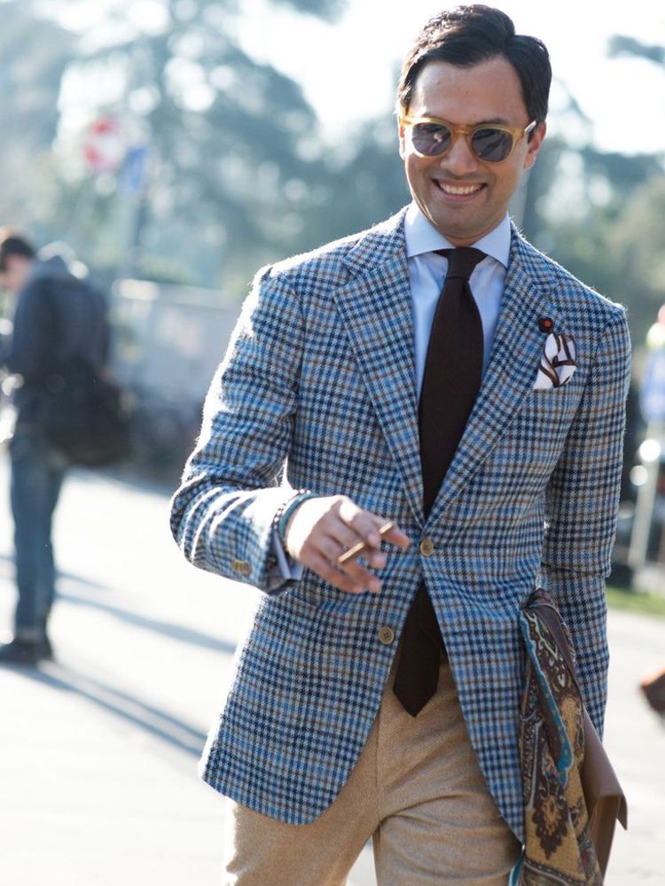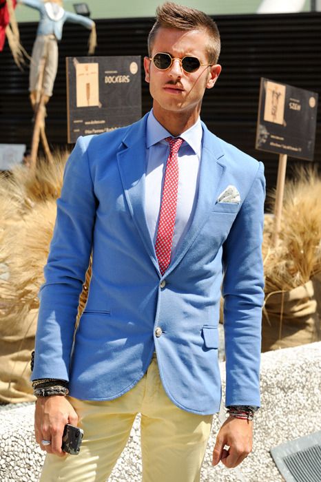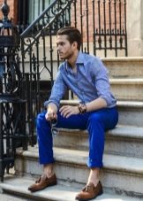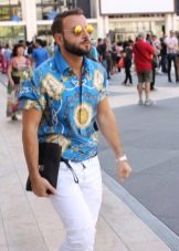 This season, men can do a lot in terms of print. The blue color is rather modest and restrained, so the patterns can be quite expressive: birds, butterflies, floral motifs, abstraction. The main thing is to be able to combine it with the rest of the outfit. The striped print is one of the most popular, it is modest, canonical. Another topical option is checkered shirts, and blue can be both primary and secondary.