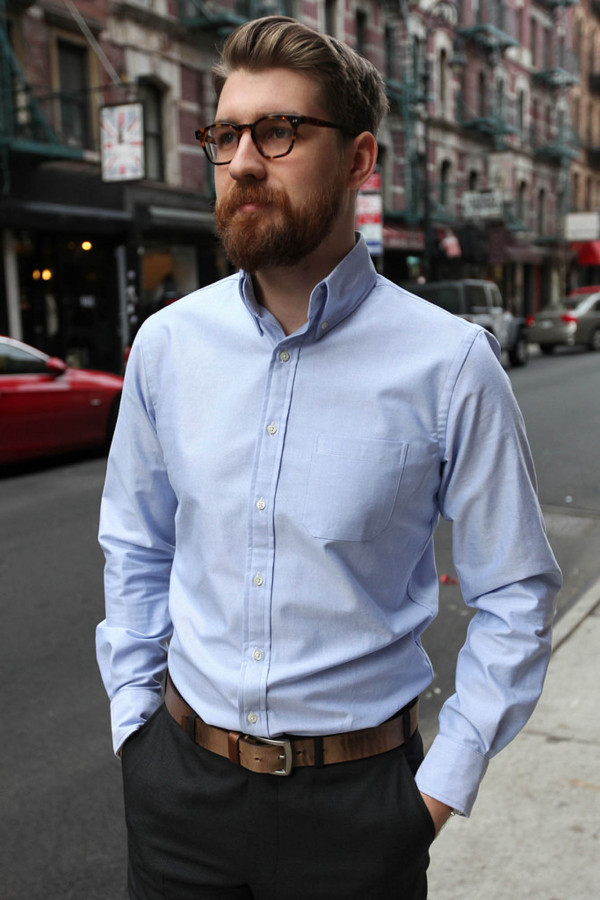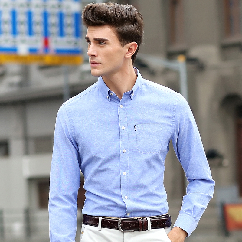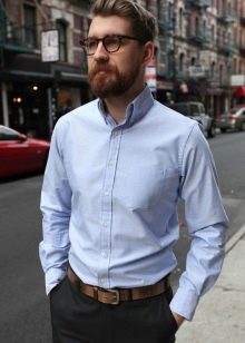 This type of shirt in a blue shade is now at the peak of its popularity. They are worn at any age, in any manner. Such a model is not suitable for a dress code that is too tight. The model got its name thanks to the Oxford fabric.