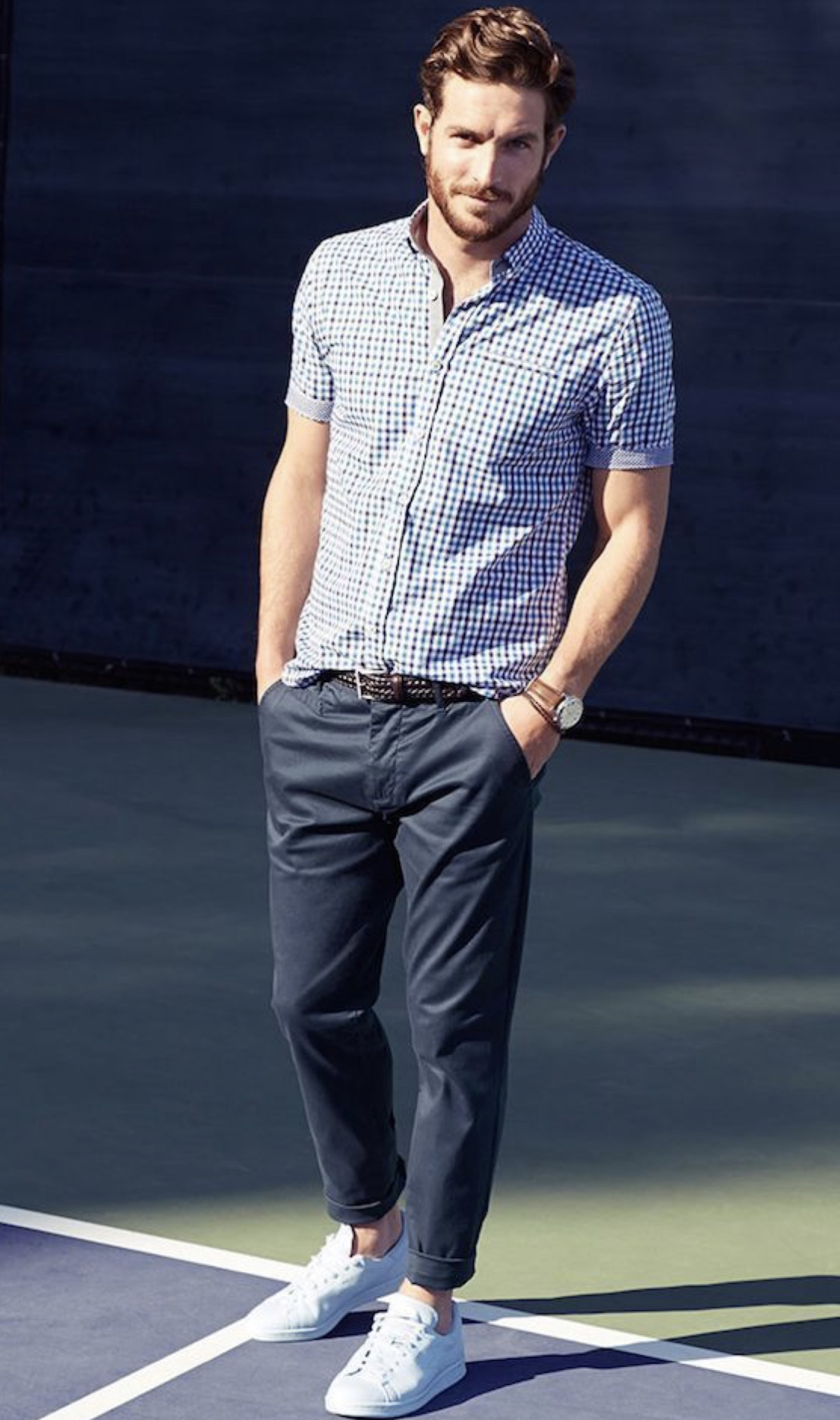 Plaid oxford shirts are in high demand. They are versatile, well suited to different looks, can be worn with a cardigan, vest, jumper. As a bottom, you can choose chinos, jeans and even shorts for a summer ensemble.