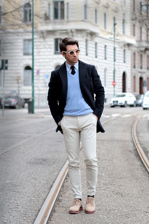 depending on the purpose of the image, such things are worn with jeans, chinos, corduroy and dress pants.