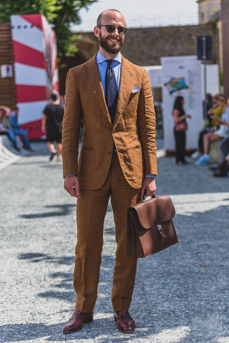 A bright fitted model and beige trousers are the perfect solution for the office in the summer.
