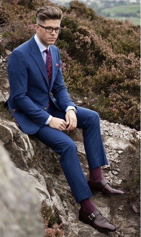 with a blue suit - the perfect combination, especially if you add a wine, blue or blue tie here;