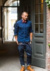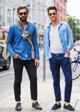 Such models look organically in combination with dark gray classic jeans, straight corduroy trousers and black slacks. Knitted vests made of fine light wool, jackets and jackets made of brown or beige suede can be a good addition to such ensembles. (or its imitation). A wide and comfortable denim shirt of any blue shades allows you to create a bright sporty look. Such models can be combined with jeans of any style, trousers, tracksuits, breeches.