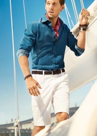 Blue shirts with long sleeves allow you to create a formal, formal, romantic and casual look. For example, such a model, complemented by a tie with a strict geometric pattern, will ideally fit into the image of a business person... An unbuttoned denim shirt, worn over a snow-white T-shirt, can successfully emphasize the informal image of its owner.