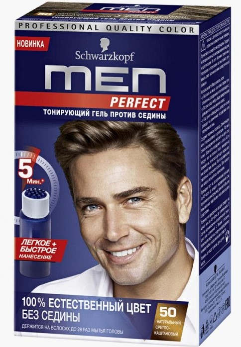 Also, most remedies for men has a long-lasting effect. Usually the shade lasts for at least two months and withstands 15-17 shampooing sessions. The difference is also the description of the color on the package. For example, a woman will not be embarrassed by the veiled name of the shade "Frosty chestnut", while a man, seeing this combination, will most likely be surprised, so it is easier for him to understand names such as "dark blond" or "light red".