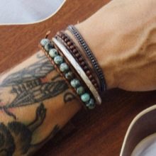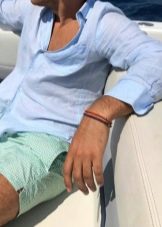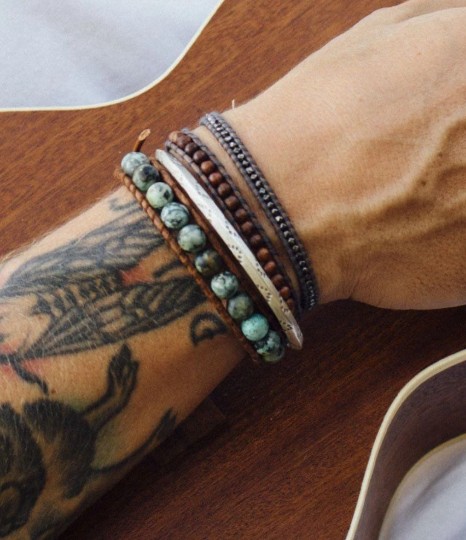 - Chan Luu. Durante varios años, los productos de los maestros chinos han estado en la cima de su popularidad. La combinación de materiales naturales con looks étnicos los ha hecho muy buscados. Los cordones de cuero con cuentas, envueltos alrededor del brazo en varias vueltas, se ven muy bien y son cómodos de usar. Las pulseras Chan Lu para hombres se presentan con mayor frecuencia en forma de productos de jaspe, también puede ser hematita y otras piedras naturales.