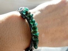 - Productos esmeralda se convertirán en amuletos de las fuerzas del mal, el uso de tales accesorios dará tranquilidad y ayudará a deshacerse de la melancolía. Estas pulseras de piedra ayudarán con las enfermedades oculares y aliviarán la inflamación.