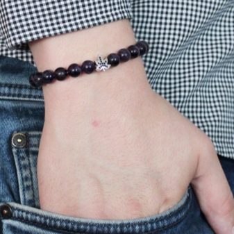 - Hecha de abalorios. Este accesorio es cómodo de llevar, es fácil de poner y quitar estirando la banda elástica. Dichos modelos no tienen sujetadores, por lo que se adaptan a cualquier tamaño de mano. Más a menudo, los productos con banda elástica están hechos de shungit, ágata y otras piedras.