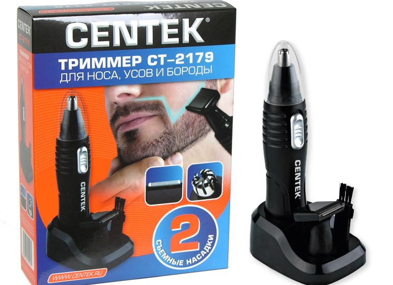 - Centek CT-2179 - Adecuado para cortar el pelo de la nariz y las orejas, así como para el tratamiento de barbas y bigotes. Fuente de alimentación autónoma, las cuchillas están hechas de acero inoxidable. El costo promedio es de 250 rublos.