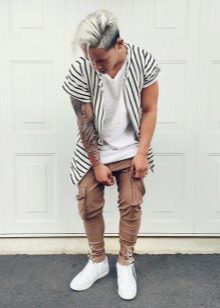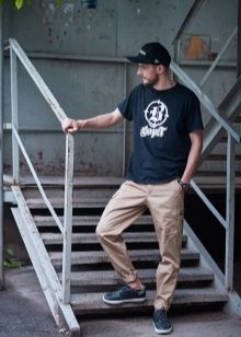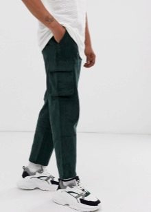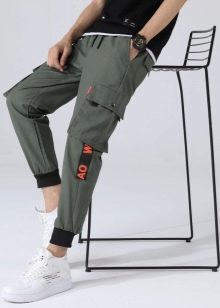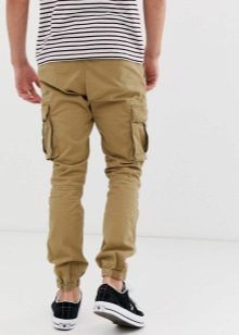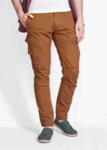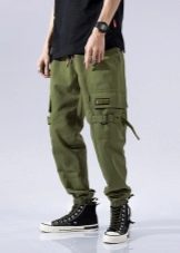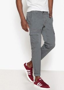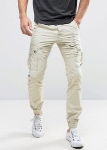 - Cargo con puños - un estilo de pantalón relativamente nuevo y bastante original, que es óptimo para chicos jóvenes y personas creativas.