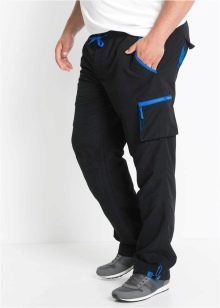 - Carga grande - estos pantalones están diseñados para personas grandes. Llamamos la atención sobre el hecho de que visualmente hacen que las piernas de un hombre estén más llenas, por lo que se recomienda con mayor frecuencia su uso en hombres con físico asténico.