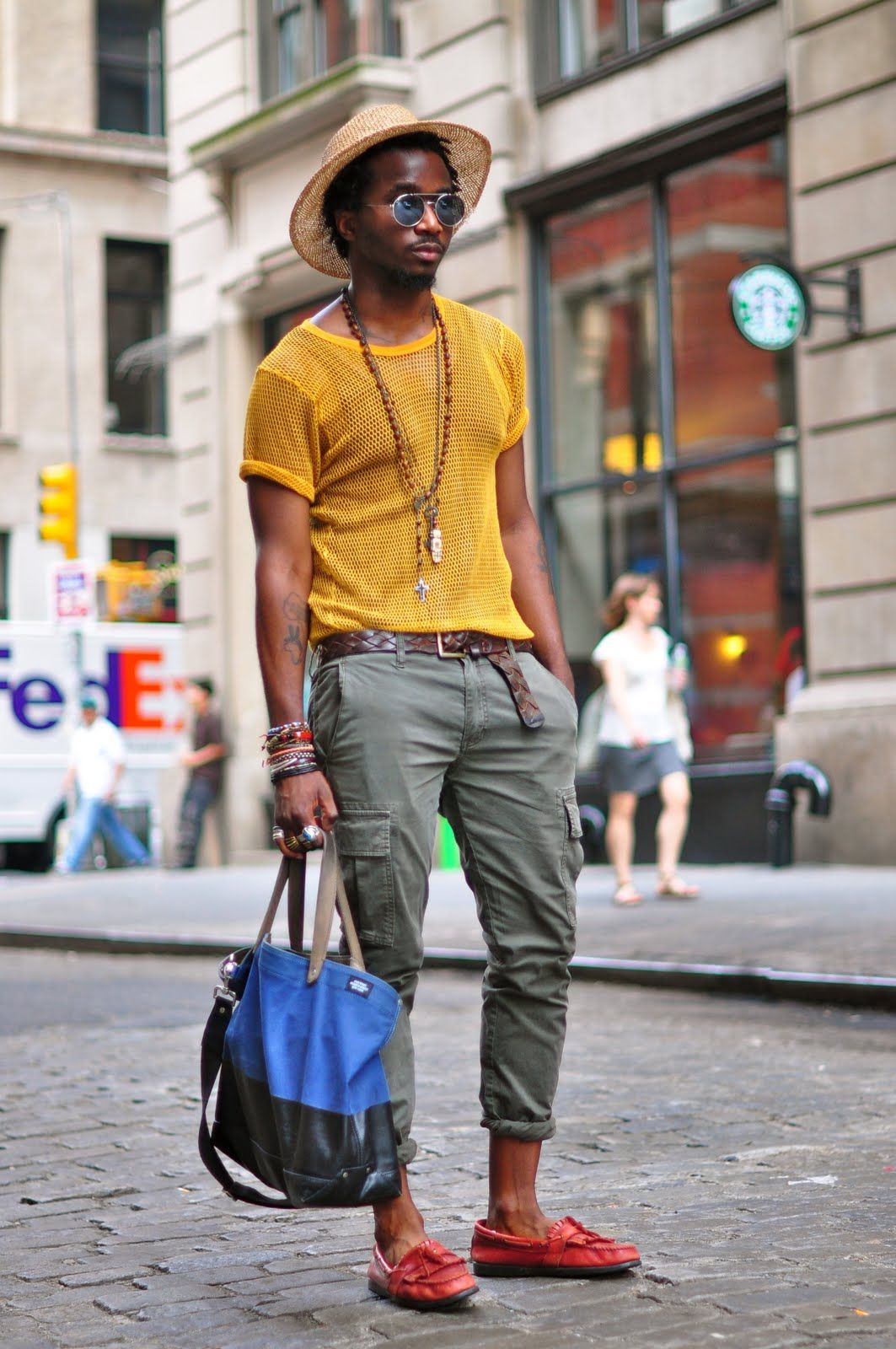 De los sombreros, es mejor dar preferencia a los pañuelos y gorras de béisbol. Los zapatos pueden ser absolutamente cualquier: zapatillas de deporte, zapatillas de cuero, botas clásicas, así como mocasines y botines son apropiados.