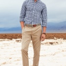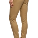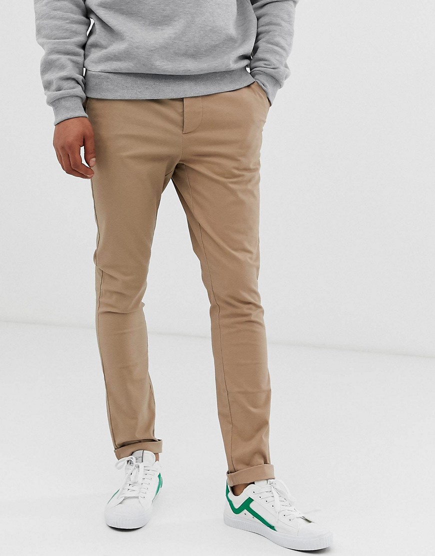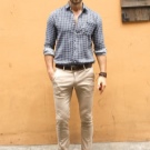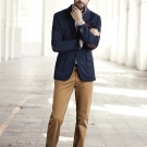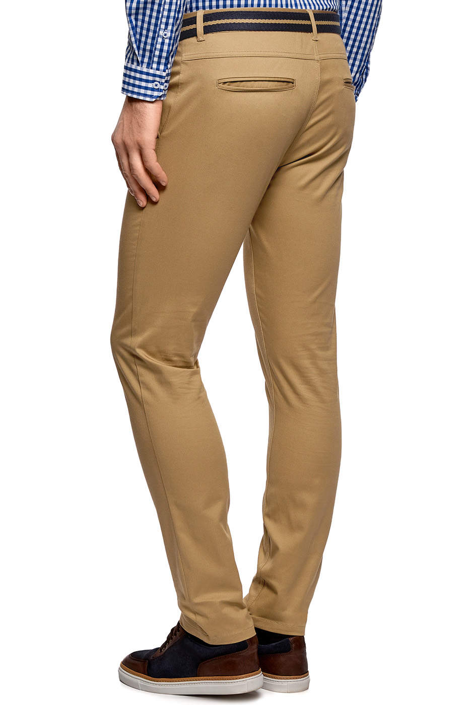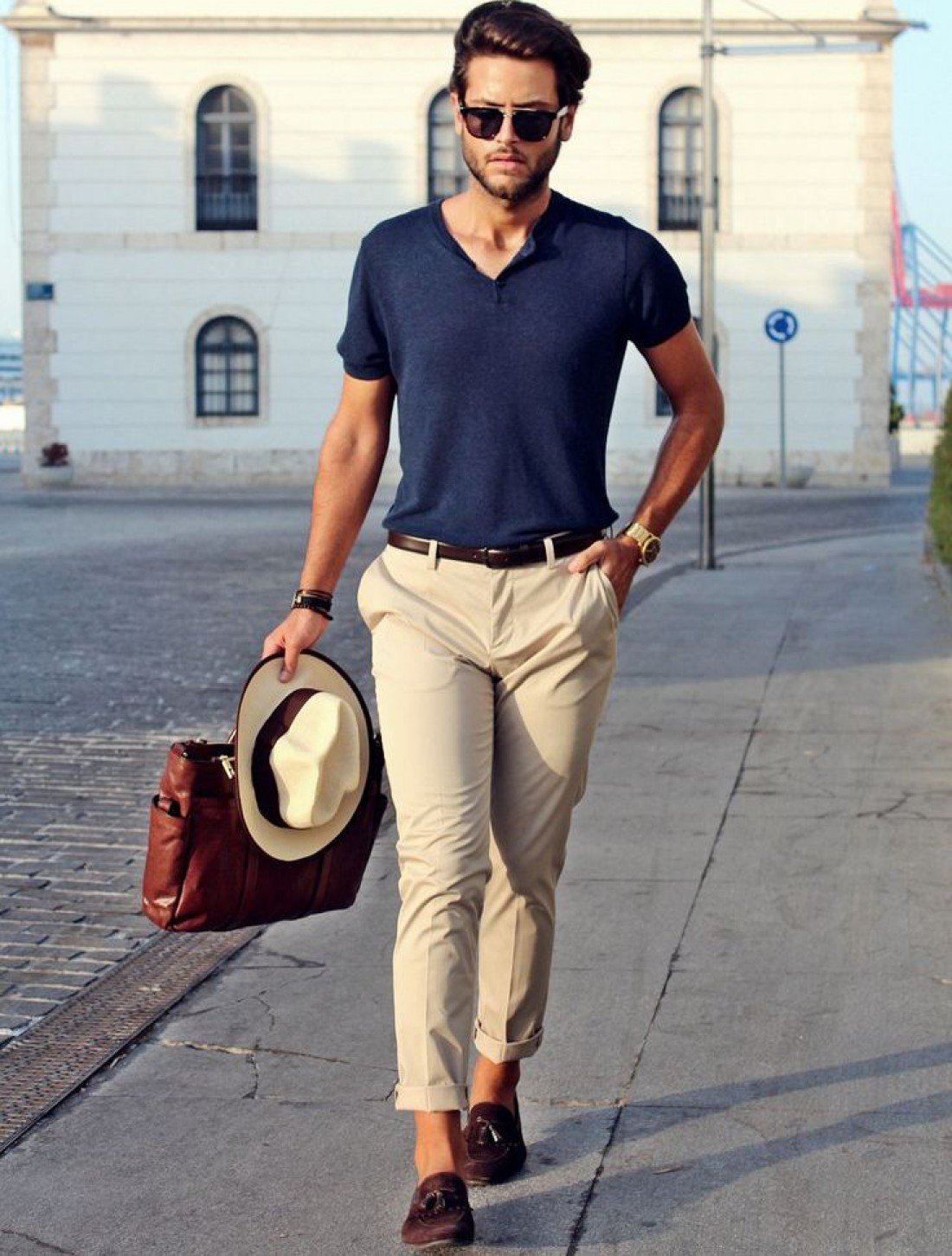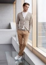 Usados con un vuelta, los chinos en tonos beige y caqui tradicionales son ideales para la ropa informal. Se pueden usar con jerséis, camisetas, camisas, chaquetas de algodón. El estilo casual de negocios le permite combinar chinos beige y pantalones clásicos con camisas lisas, corbatas, cardigans, chaquetas.