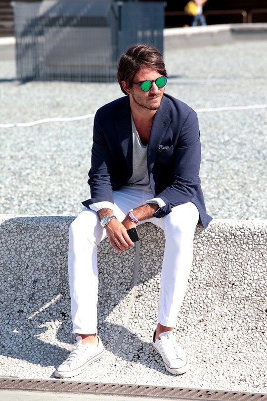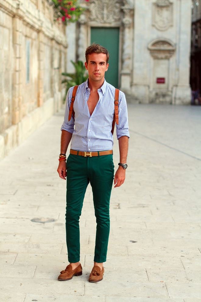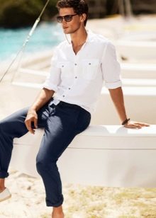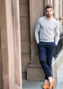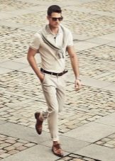 Para alargar visualmente sus piernas, si es necesario, debe elegir pantalones con flechas o rayas. Los pantalones con un borde inferior sin terminar permiten hacer el largo de los pantalones que se adapte a un hombre en particular.