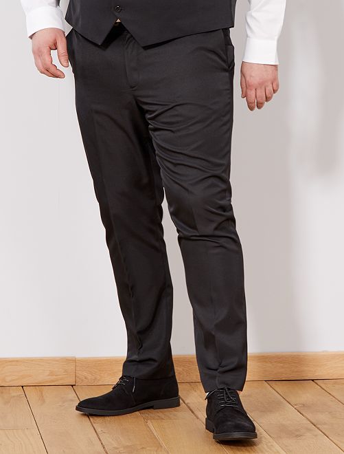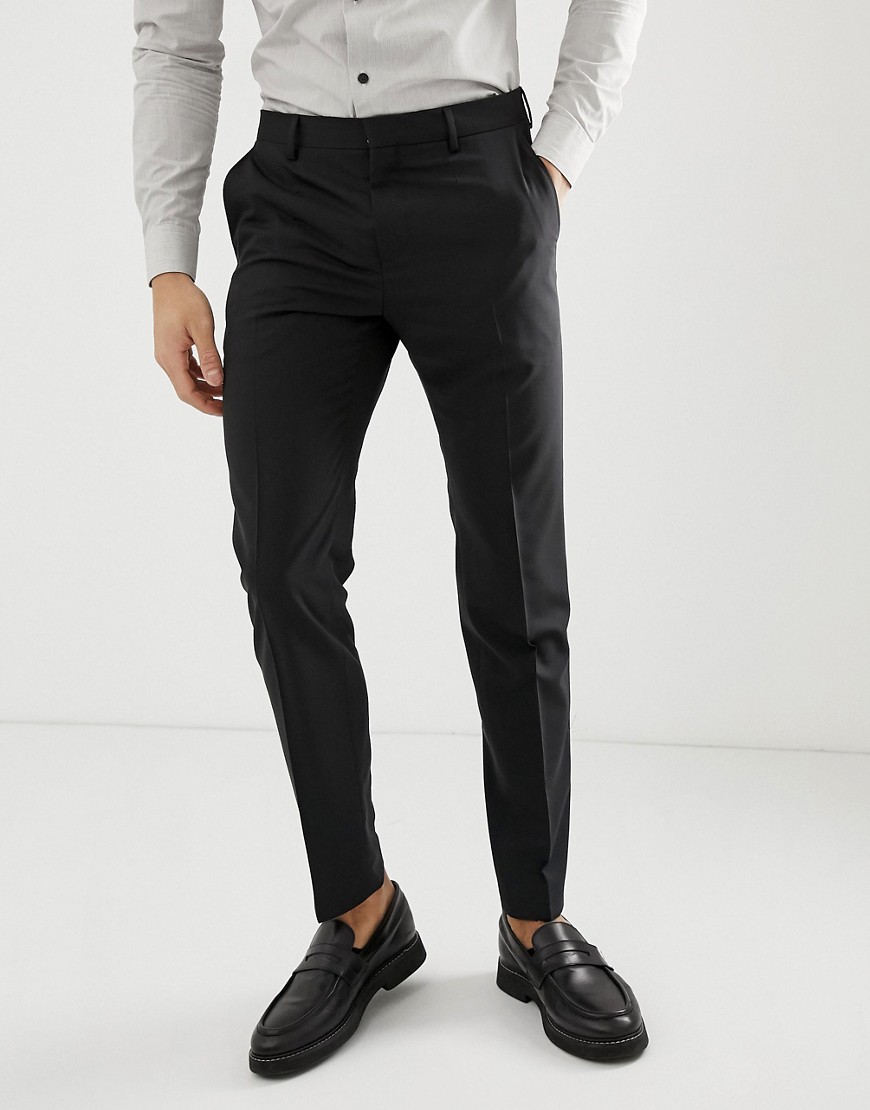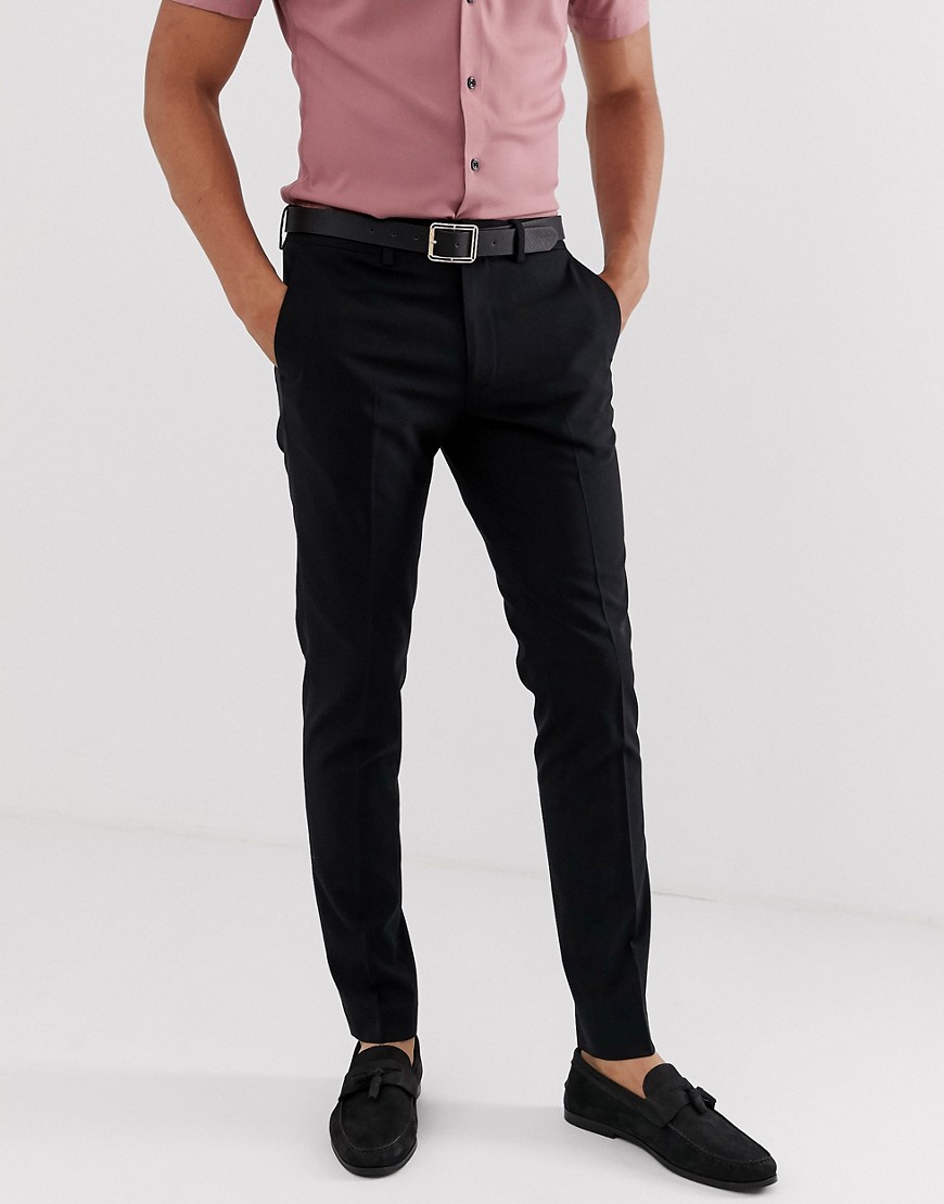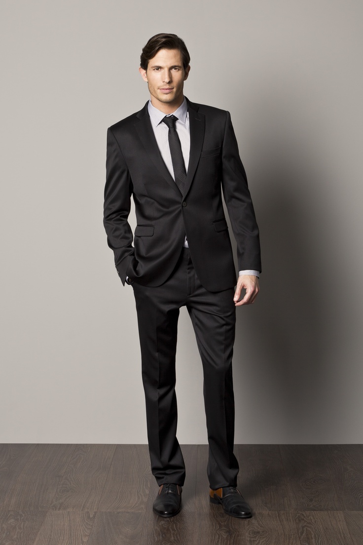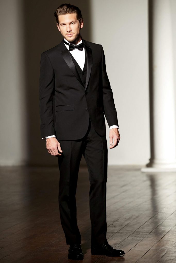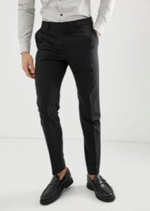 Los pantalones negros como parte de un traje del mismo color en un estilo de negocios son la opción más adecuada no solo para la oficina, sino también para eventos especiales programados para la noche. Tal ropa puede reemplazar un esmoquin si es necesario. Tradicionalmente, los pantalones con rayas de seda formaban parte de un traje de noche para hombres, así como una chaqueta de corte especial con solapas adornadas con seda; todo el conjunto se llama esmoquin. En la moda moderna, hay un lugar para un estilo similar de pantalón de traje, ya que los esmoquin todavía se usan de acuerdo con el código de vestimenta de corbata negra.