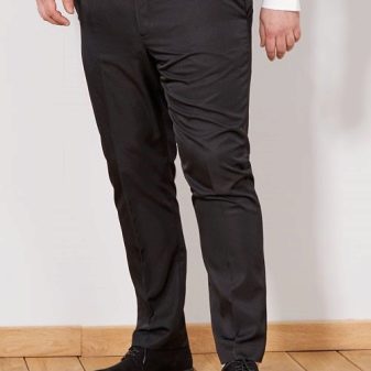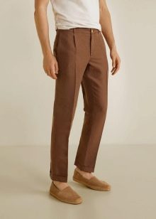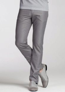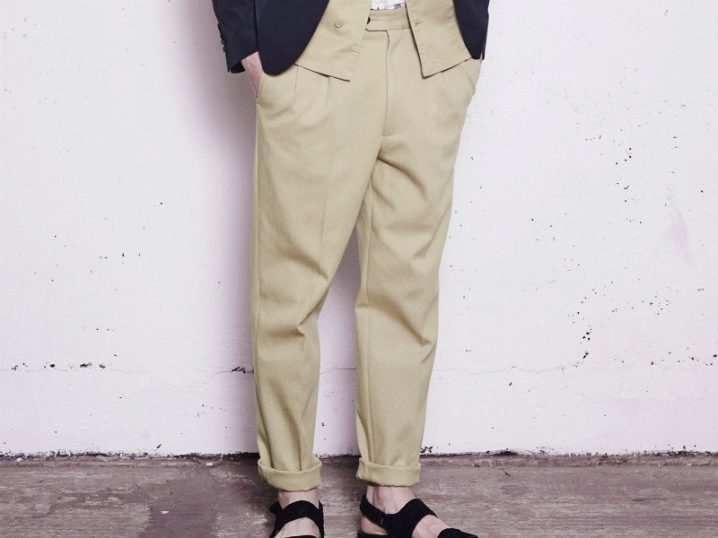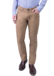 Los pantalones con puños o pantalones cortos se verán bien en hombres altos y delgados. Los pantalones pitillo, especialmente los de color oscuro, no son la mejor opción para hombres muy delgados, en este caso es mejor preferir un corte recto y tela de color claro. Los estilos de moda ahora de poca altura son adecuados solo para personas sin exceso de peso, con figuras proporcionales.