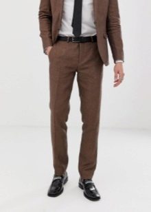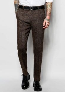 - Flechas se consideran otro elemento clásico de los pantalones de hombre.A menudo son como una continuación del mechón.