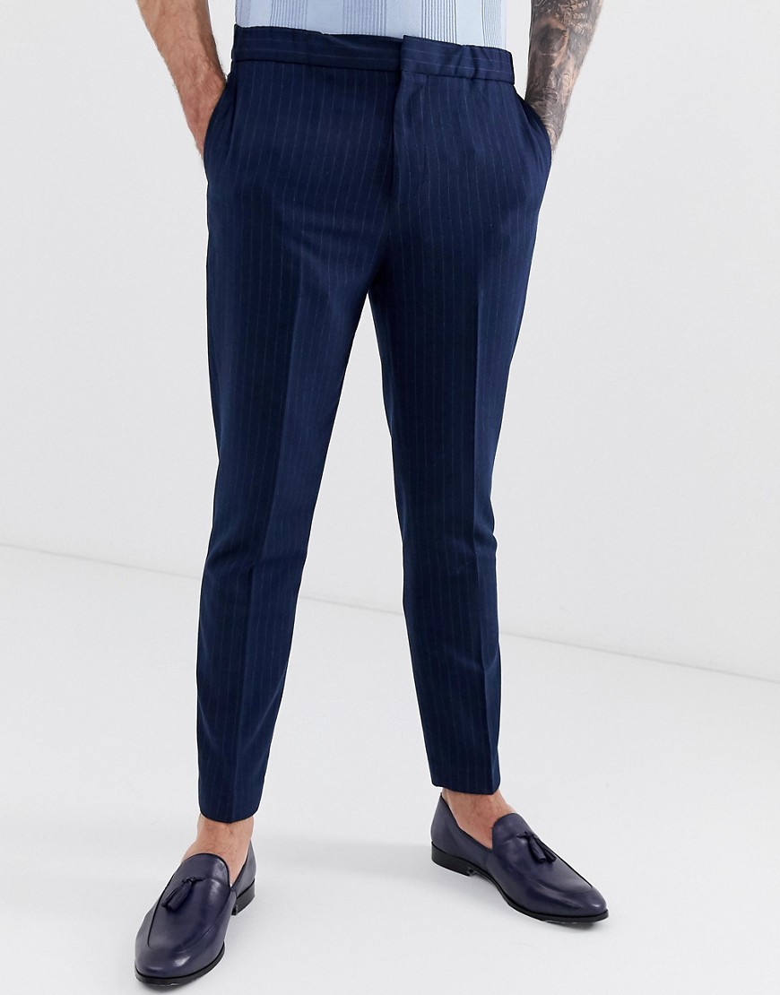 Los elementos habituales de los pantalones clásicos de hombre son los denominados pliegues y flechas. Las pintas son pliegues en la parte delantera debajo del cinturón. Aparecieron en el momento en que surgió la moda de los pantalones anchos, es decir, en los años 30-40 del siglo pasado. El ajuste de los pantalones era alto y los pliegues permitían enfatizar la línea de la cintura. Hay opciones con dos pliegues a cada lado o uno. El primero es mucho menos común y suele encontrarse en pantalones anchos. En general, este estilo no es típico de la moda actual.