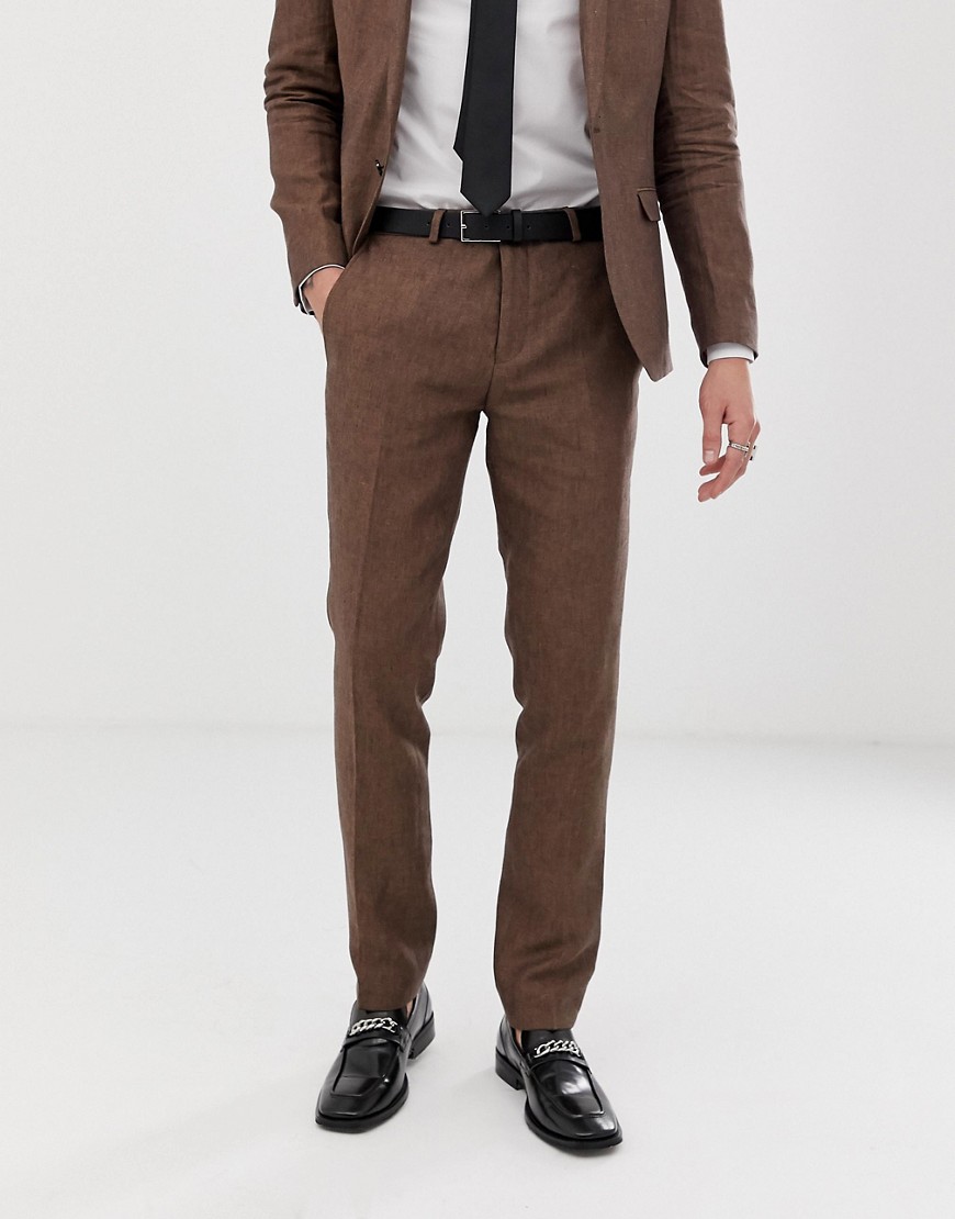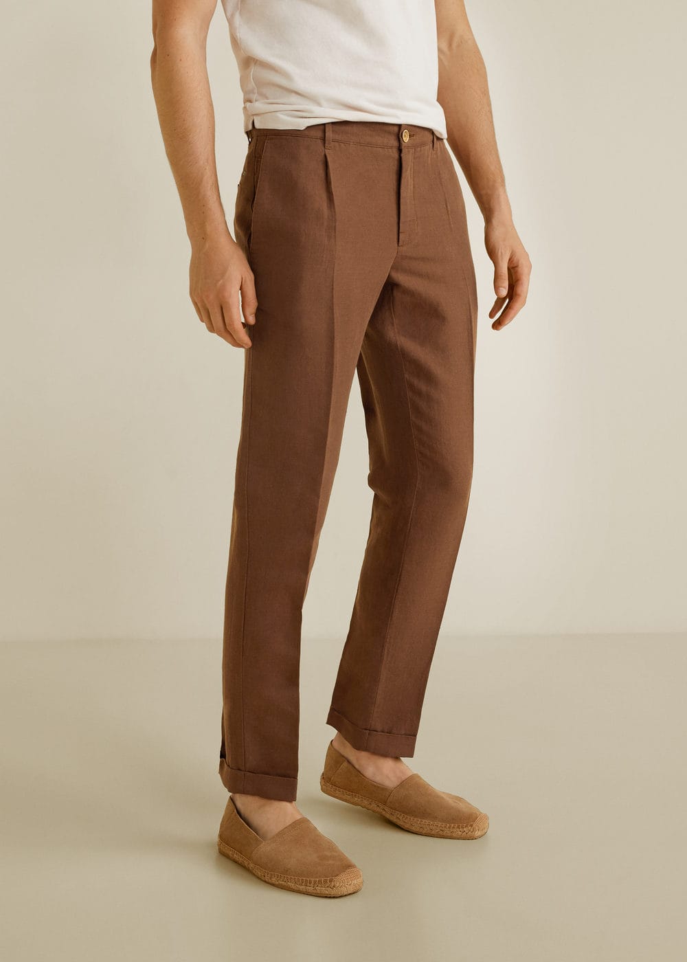 Las telas de lino puro no se utilizan a menudo para confeccionar pantalones clásicos, la composición de lino más algodón es mucho más práctica.
