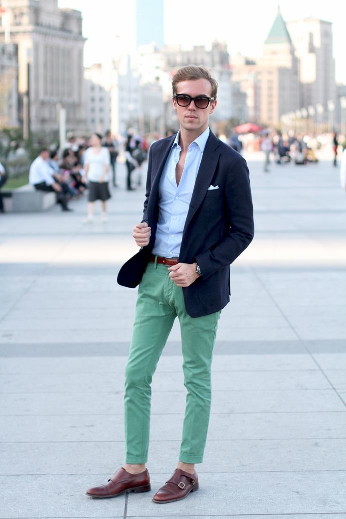 No hay consenso sobre la idoneidad de los chinos en un estilo de ropa de negocios, pero los pantalones, dependiendo de los colores elegidos y los detalles de corte, pueden ser una buena opción tanto para un traje de oficina como para un atuendo casual. Se cree que los pantalones van bien con la ropa en una variedad de estilos. Los pantalones son pantalones fuera del traje sin flechas, ligeramente cónicos en la parte inferior, otros detalles del corte pueden variar. Por ejemplo, existen opciones de holguras como: