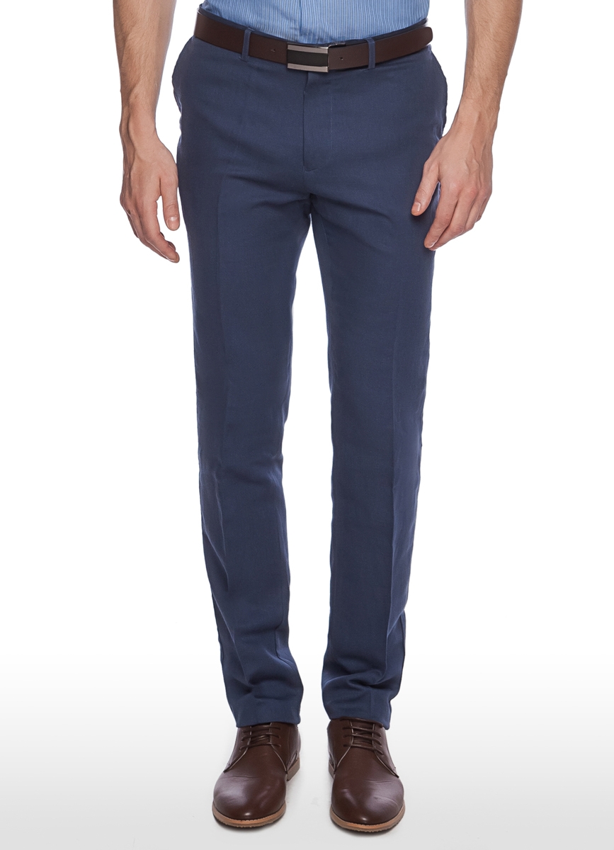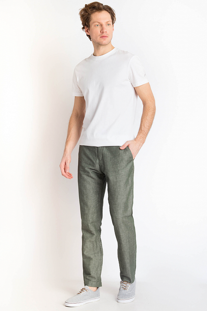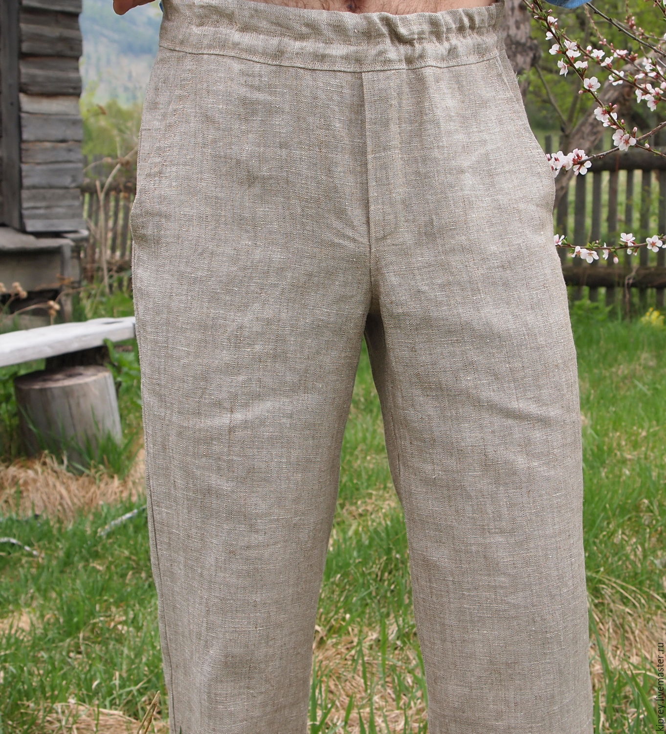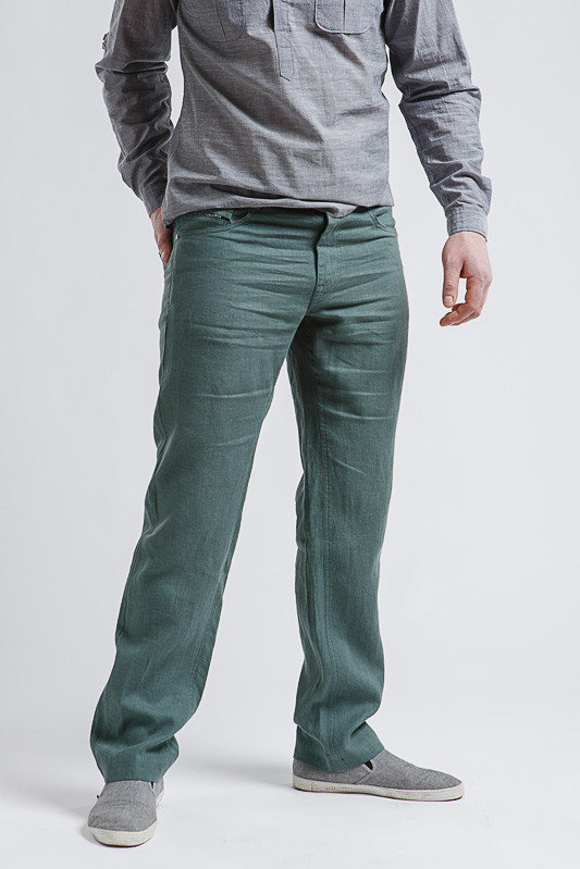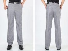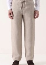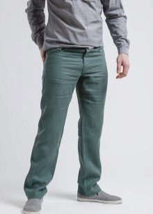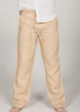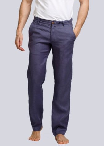 El lino es muy denso, fino y ligeramente rugoso. Parece muy simple. Pero al mismo tiempo, puede coser pantalones elegantes para hombres, que se adaptarán a casi cualquier persona.