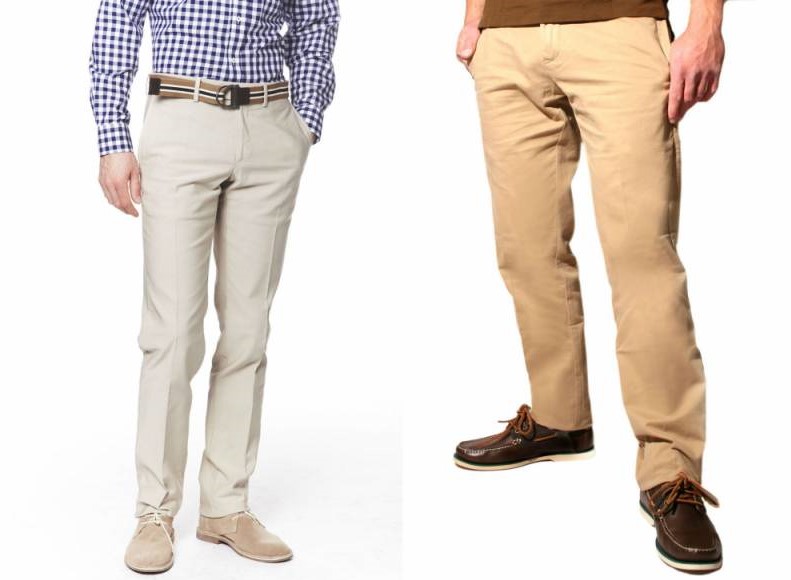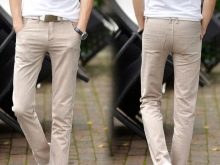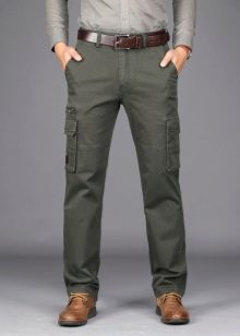 Estos pantalones son más adecuados para hombres brutales y fuertes. Están fabricados en una amplia variedad de colores. Para la temporada de verano, lo mejor es comprar opciones para un tono arena o gris.