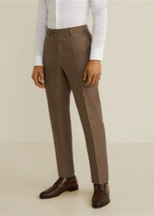 - Los pantalones marrones son bastante populares.... Sin embargo, aquellos que eligen ese tono deben elegir una parte superior clara para ellos. Además, los hombres deben tener en cuenta que el marrón es visualmente regordete.
