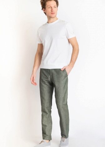La mayoría de las veces, estos modelos son rectos en la parte superior y ligeramente estrechos en la parte inferior. Los pantalones de lino de este tipo se pueden presentar en una amplia variedad de colores. Esto es genial, porque todos pueden encontrar algo interesante para ellos. Son adecuados para el trabajo y para los paseos diarios y para reuniones con amigos.