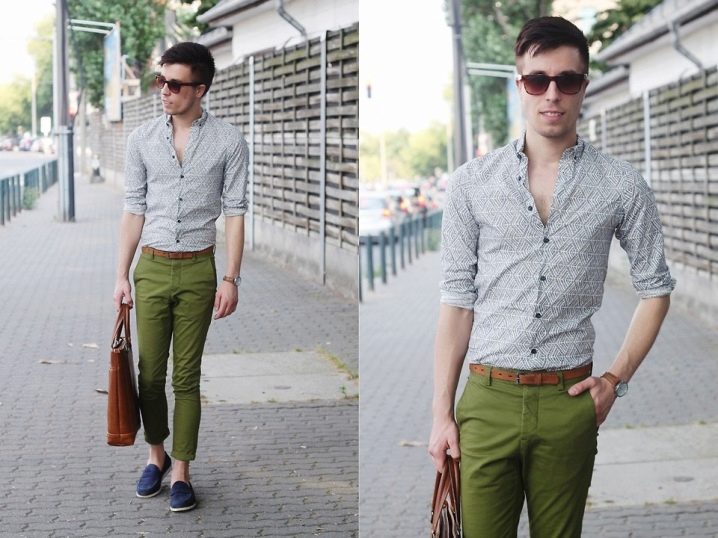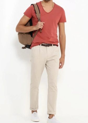 Tales modelos se ven perfectos en jóvenes delgados. Los estilistas aconsejan a los caballeros de baja estatura que los compren. El hecho es que alargan visualmente las piernas y también adelgazan al hombre. Estos pantalones se pueden combinar con camisetas y camisas ligeras.