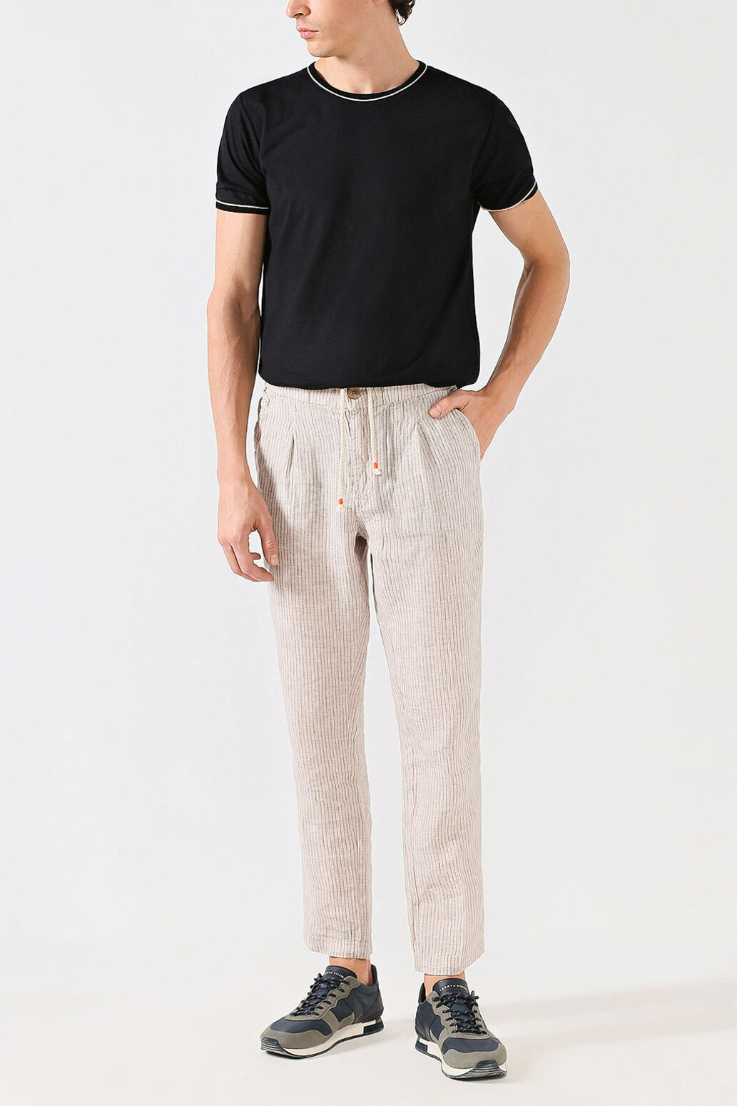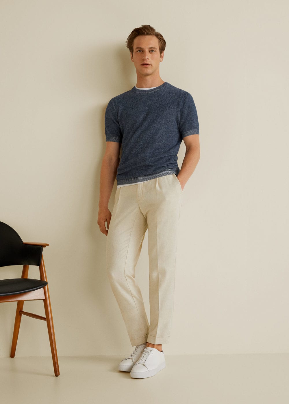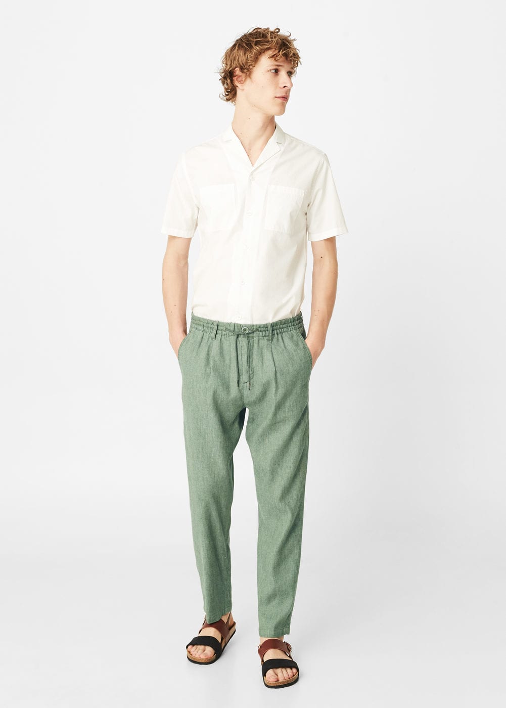 - Los pantalones de lino son ligeros y finos. Además, el tejido es transpirable, por lo que resulta especialmente agradable llevarlos con el calor.