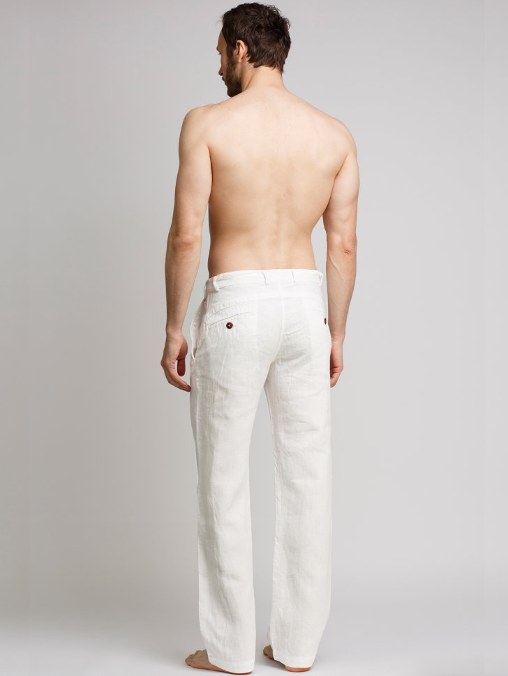 - Otra cualidad importante de este material es que no provoca reacciones alérgicas. Por tanto, los pantalones de lino pueden ser usados por todos, sin excepción, sin preocuparse en absoluto por su salud.