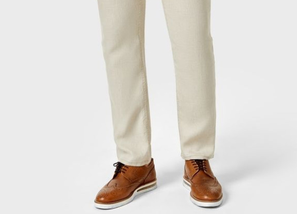 Los pantalones de lino son muy ligeros. Por lo tanto, debe elegir los zapatos adecuados para ellos. Pueden ser zapatillas de deporte comunes, zapatos sin cordones, sandalias e incluso zapatos con perforaciones pasantes. Pero los calcetines son opcionales en verano. Si lo desea, puede utilizar accesorios adicionales: una bufanda, una hermosa pajarita y, por supuesto, una corbata.