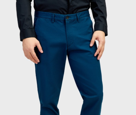 - Los pantalones azul oscuro les parecen un poco lúgubres. Sin embargo, son ideales para reuniones formales y negociaciones comerciales. Por tanto, estos pantalones encajarán perfectamente en el armario de cualquier empleado de oficina.