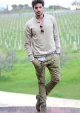 El caqui es un clásico del género.... Los esquemas de color gris verdoso se ven especialmente relevantes. La popularidad del caqui se explica por el hecho de que los pantalones de este color pueden estar en armonía con cualquier producto hecho de gamuza o cuero de colores naturales, por lo que cada hombre puede elegir por sí mismo cosas que combinen completamente con su estilo. En rebajas siempre puedes encontrar modelos de corte recto o libre, así como calzones perfilados y pantalones juveniles ajustados.