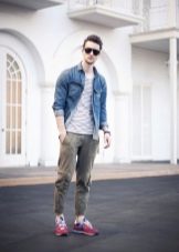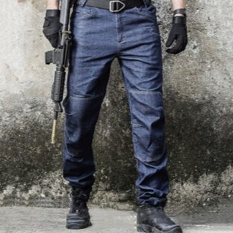 - Para los amantes de los jeans, recomendamos pantalones, confeccionado en denim, estilo soldado. Este material es resistente a las influencias externas, es práctico, no se enrolla con el tiempo y puede soportar lavados frecuentes.