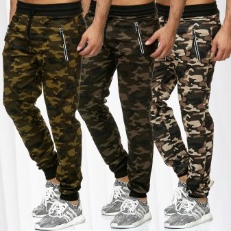 La primera asociación que surge cuando se menciona la palabra militar es un patrón de camuflaje. Esta es una solución popular, pero lejos de ser la única, para los pantalones de los hombres del ejército. Los modelos monocromáticos son mucho más prácticos. Un arco militar en su conjunto obliga a usar pantalones de colores utilitarios apagados, los tonos llamativos contrastantes son inaceptables aquí, mientras que siempre hay un lugar para variaciones tranquilas en tonos claros, por ejemplo, arena.