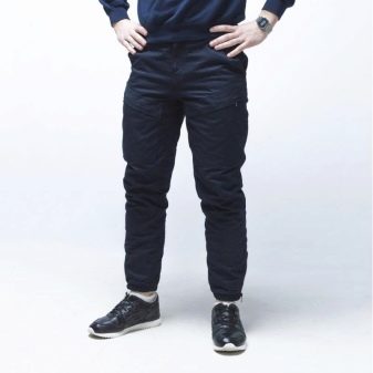 En invierno, es mejor optar por pantalones aislantes.... Tradicionalmente, se fabrican con tejido impermeable, no dejan pasar el agua y el viento y se complementan con forro polar o guata sintética. Vienen en pantalones rectos o abullonados con superficie mate, aunque se permite un discreto efecto brilloso. A menudo, la ropa militar de invierno en colores se usa para deportes y viajes, por lo que dichos pantalones se complementan con tirantes o tirantes extraíbles.