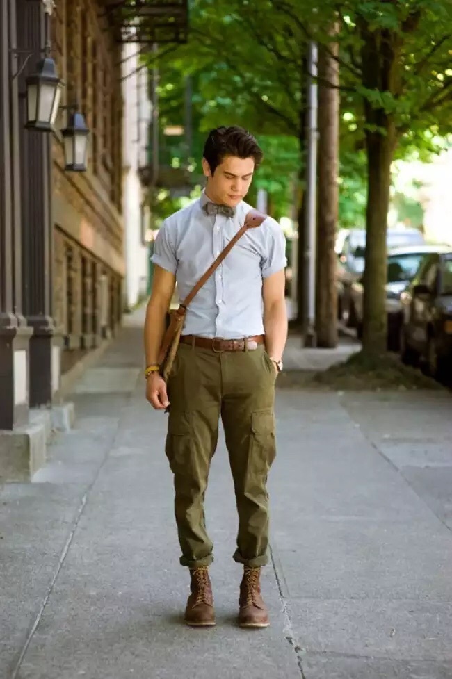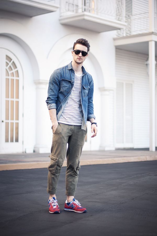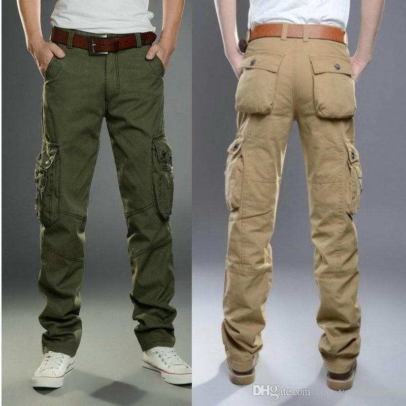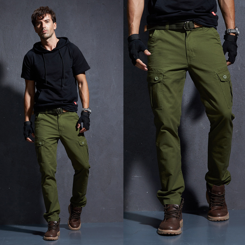 Eche un vistazo más de cerca a los modelos tácticos con bolsillos de parche a los lados. El cargo de algodón o los chinos siempre serán apropiados.