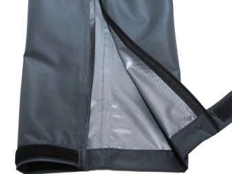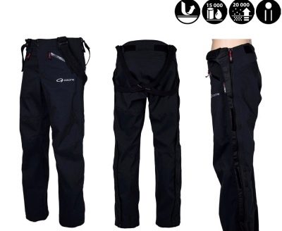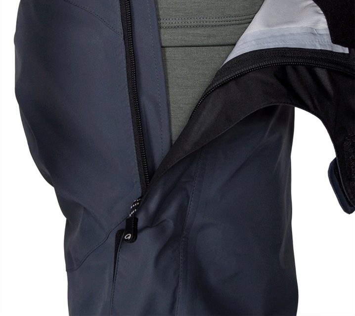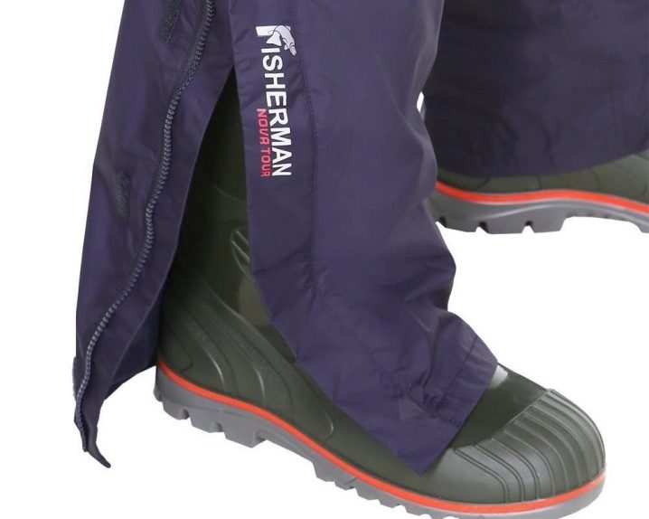 Para para ponerse esa ropa, basta con poner dos partes de los pantalones en la parte delantera y trasera del cuerpo, y luego conectar las mitades con una cremallera. La tela de membrana se utiliza para la fabricación de pantalones. Protege contra cualquier tipo de precipitación y viento. Los pantalones hechos con esta tela se pueden usar en cualquier época del año. La estanqueidad de las costuras también proporciona una protección adicional contra condiciones ambientales adversas.