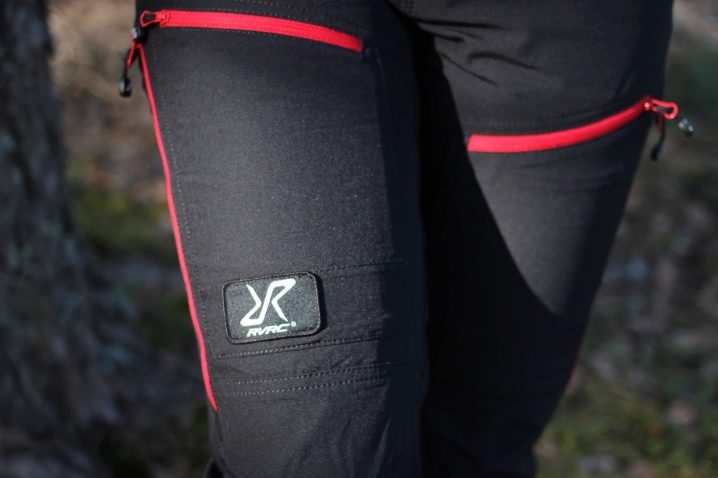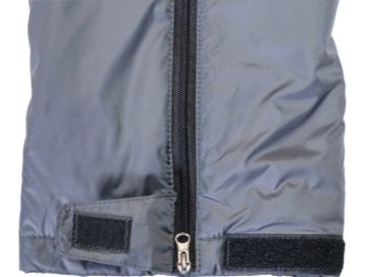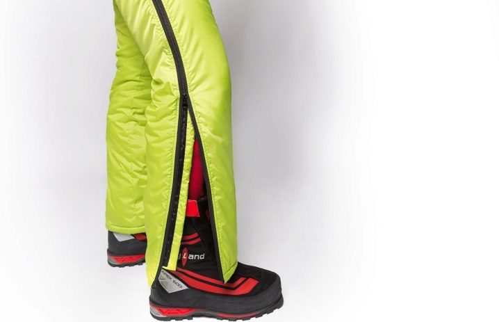 Las cremalleras están cosidas a los lados de los pantalones, que se abrochan de arriba a abajo, conectando las dos mitades. Las cremalleras están protegidas por una tira de goma. Esto ayuda a evitar la entrada de agua, nieve y suciedad. En los modelos de diseñador para la belleza, las cremalleras se pueden reemplazar con remaches.