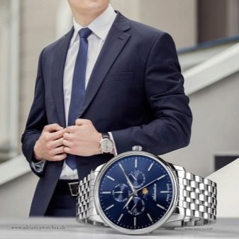 El enfoque correcto para elegir un reloj garantizará que sea cómodo de llevar. Todos los modelos de la marca Adriatica son de alta calidad, solo queda decidir por diseño y conjunto de características. Antes de comprar, decida también tipo de mecanismo. Compare los pros y los contras de los modelos mecánicos y de cuarzo. Mecánica da un error, pero es famoso por su fiabilidad y durabilidad. Para la producción de relojes mecánicos, se utilizan acero, latón, son más caros que los de cuarzo.