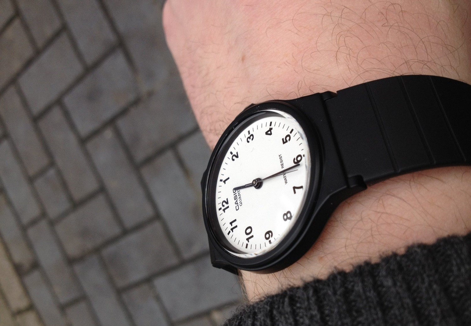 - Casio MQ-24-7BUL - Modelo compacto y ligero, cuyo cuerpo está fabricado en plástico. Una característica del dispositivo es un movimiento de cuarzo. El reloj es capaz de manejar cargas de hasta 3 atm. Una característica distintiva del modelo es la presencia de un broche tradicional que fija el dispositivo en la mano. Los diales se aplican sobre una base blanca, que es bastante conveniente y versátil.