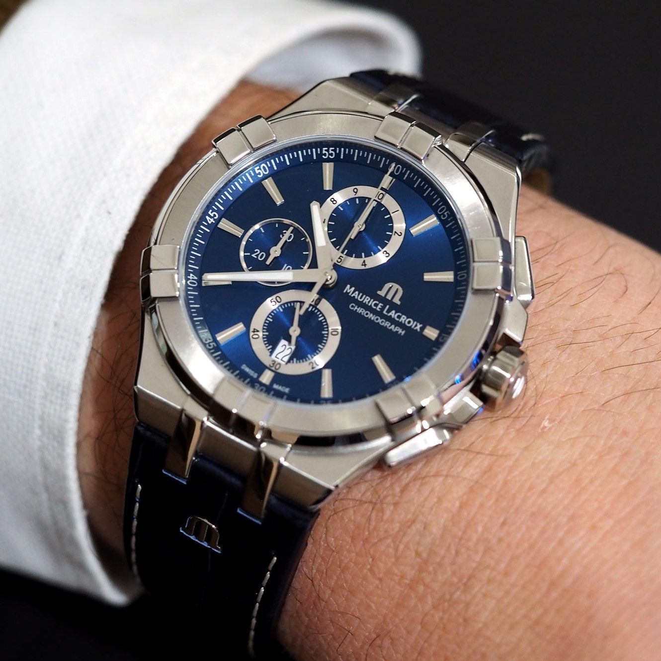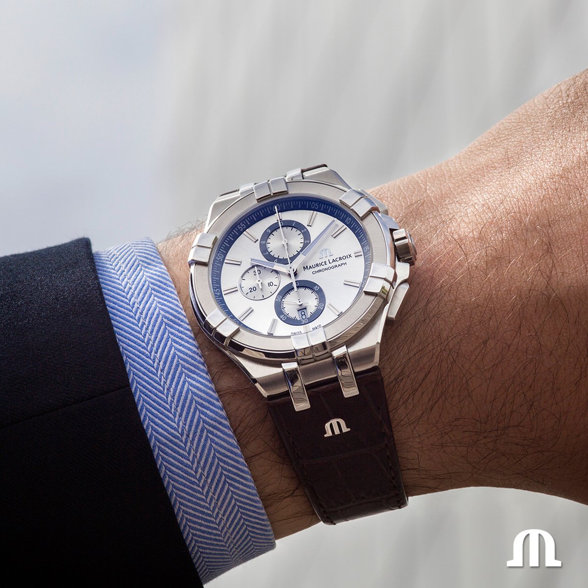 - Aikon crono - una novedad única de la marca Maurice Lacroix, que cuenta con una esfera azul y una correa de piel. El reloj se ve elegante y atractivo en la muñeca de un hombre, dando confianza al usuario. Una característica del modelo es un cronógrafo fácil de usar.