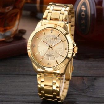 La calidad de los materiales del estuche afecta no solo su seguridad, sino también su apariencia. Por supuesto, las más caras son las muestras. fabricado en plata y oro, acero inoxidable. No se corroen, tienen un aspecto estético y caro. La opción de presupuesto sería un cuerpo hecho de aluminio o níquel, que, lamentablemente, al cabo de un tiempo pierde su atractivo aspecto, pudiendo también provocar erupciones en la zona de contacto con la piel del cuerpo. En cuanto al vidrio, el mineral y el zafiro se consideran los mejores.