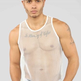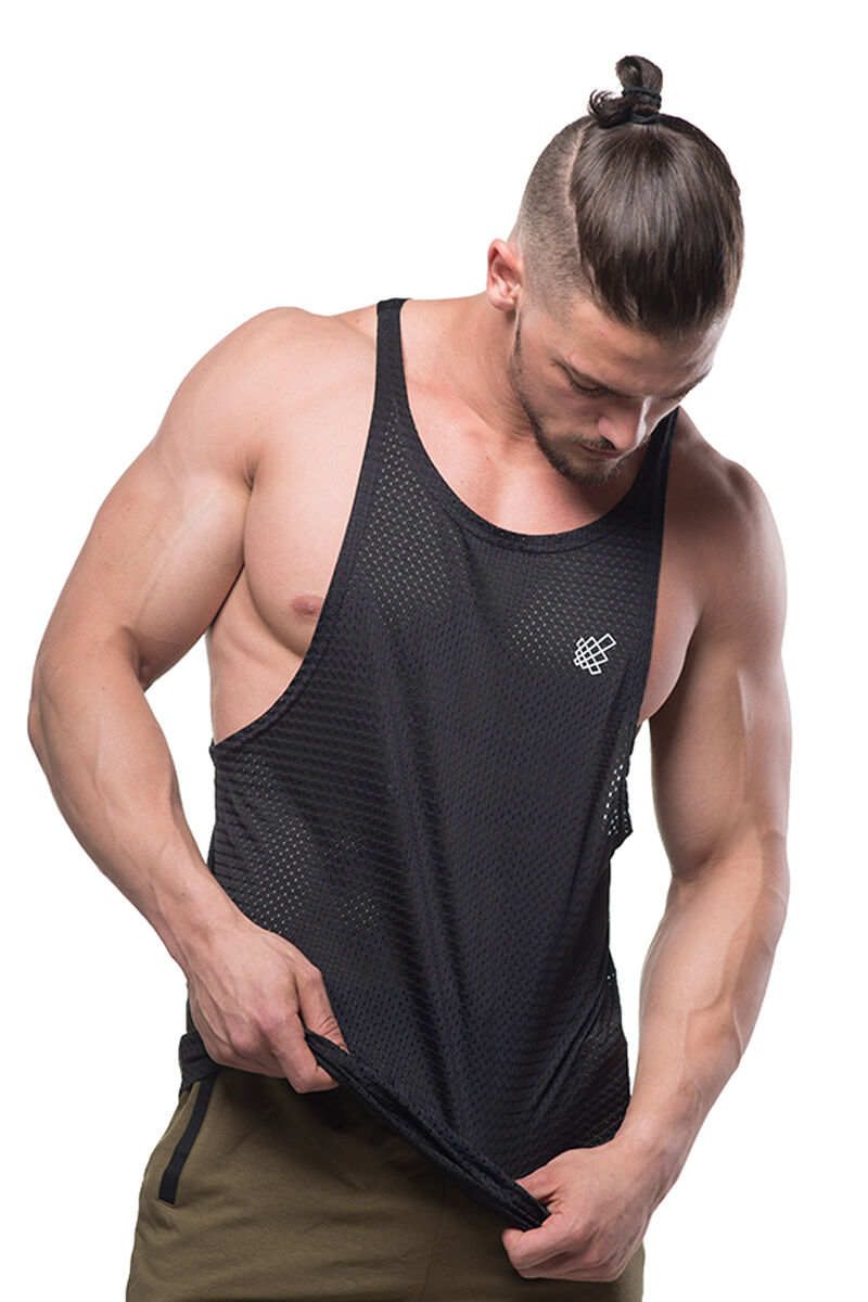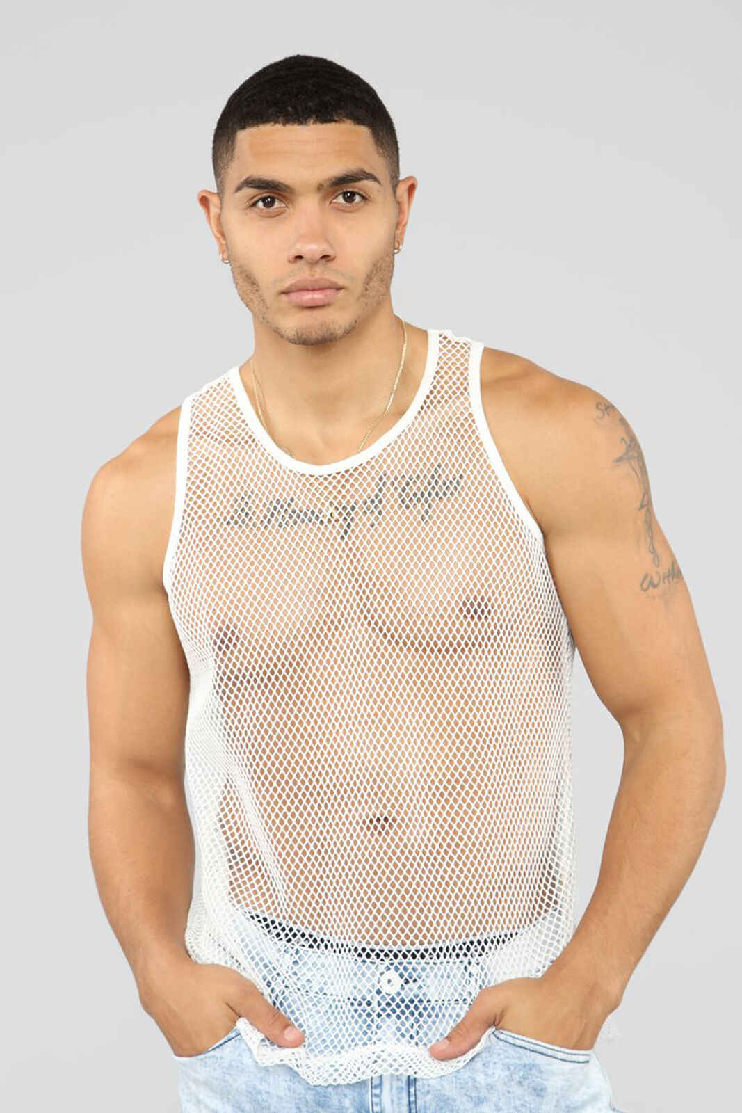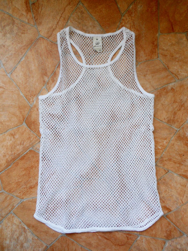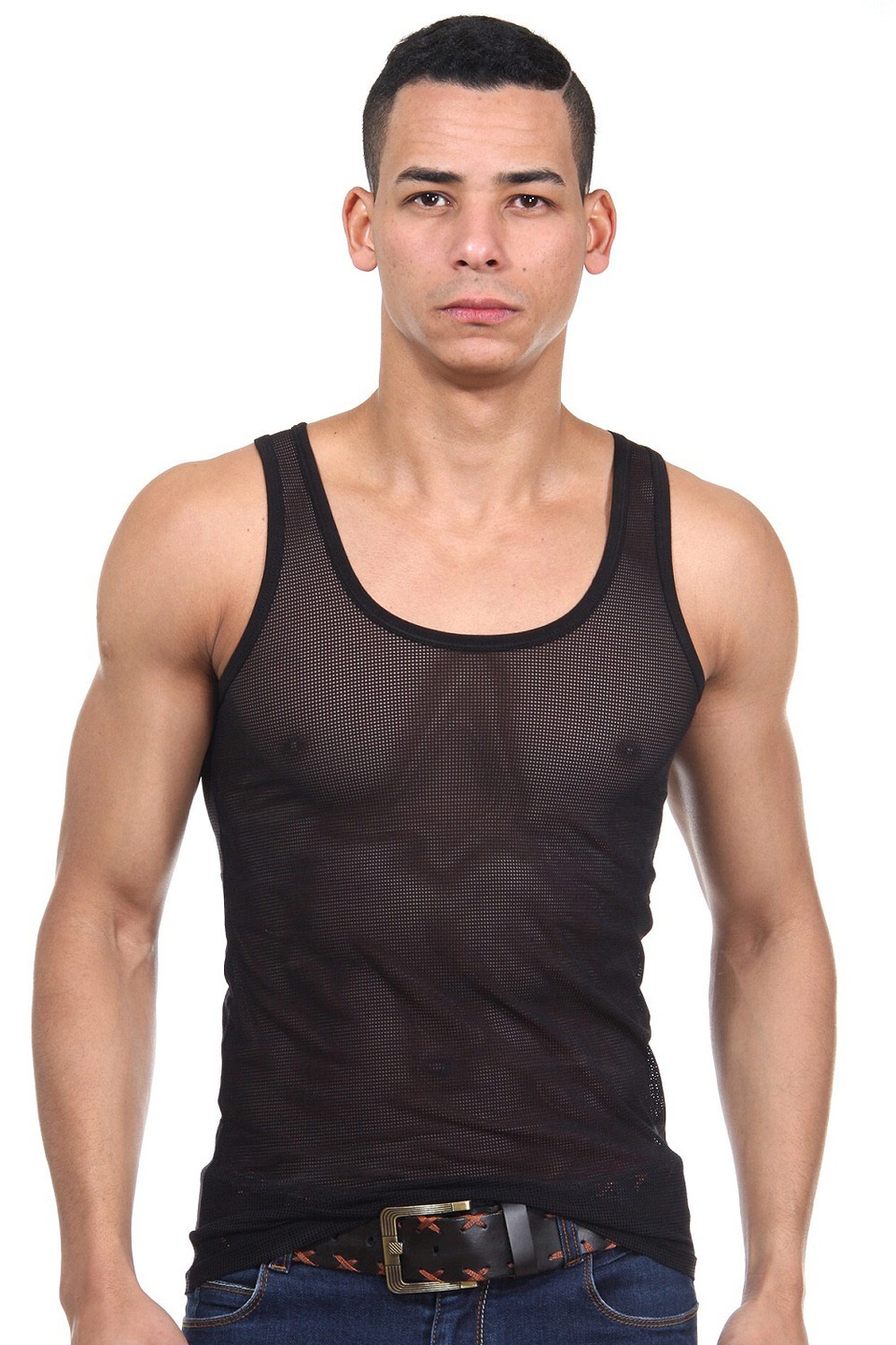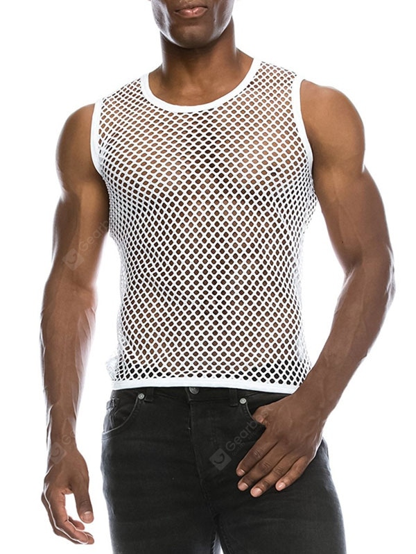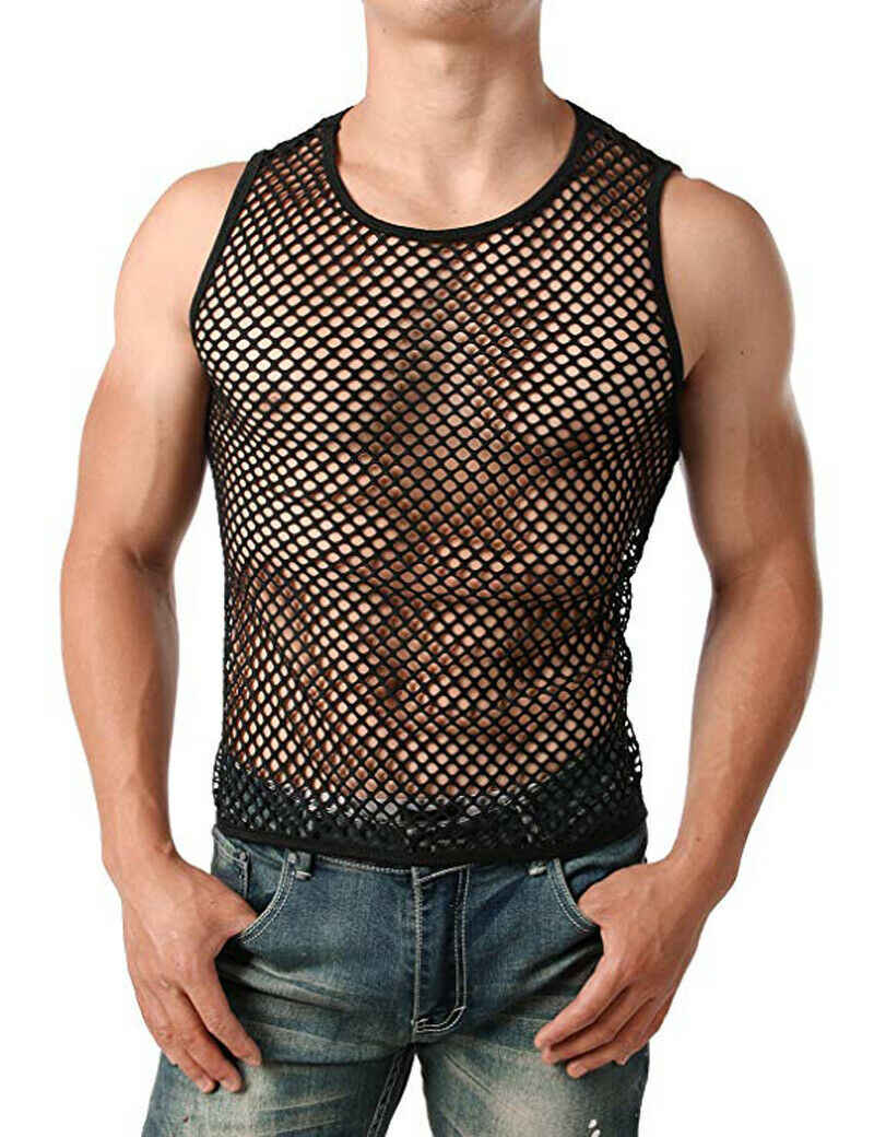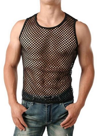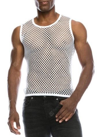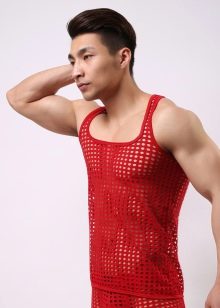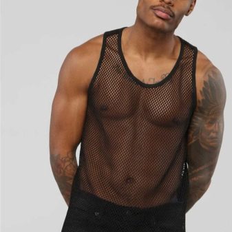 Una camiseta sin mangas de malla es relevante para el uso diario en verano. Y también se puede combinar con una chaqueta informal ligera y un chaleco vaquero. Las camisetas de malla combinan bien con chinos ligeros y pantalones cortos clásicos.