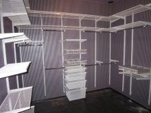 El compartimento del armario, equipado con celdas de malla, le dará al interior un sonido moderno. El sistema de armarios se compone de secciones modulares, la de nido de abeja parece estantería de rejilla, la de panel se fija a las paredes con la ayuda de paneles de madera. El tipo de instalación de marco le permite fijar los soportes al marco de metal directamente. La versión de malla es la más compacta, incluso puede caber en un metraje pequeño de la habitación.